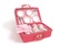 - Praktický a pevný růžový pletený košík s madlem a uzamykatelným víkem.