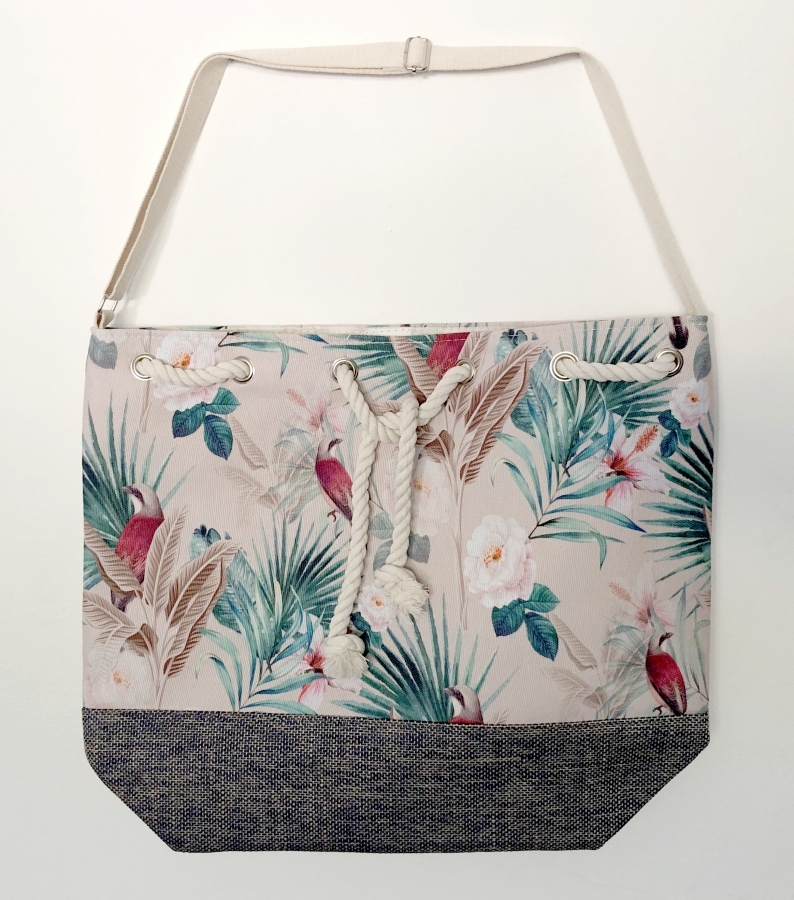 Tato plážová taška s překrásným květinovým potiskem se vám bude hodit v létě na koupaliště nebo k moři. Zabalíte do ní vše potřebné, jako je osuška, opalovací krém, knížka nebo nákup.