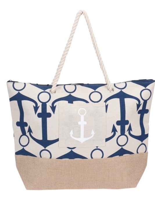 Dámská plážová-nákupní taška s motivem námořní kotvy patří k létu jak na pláži nebo i na procházce. Taška je opravdu velká, takže do ní lehce vložíte deku, ručníky, plavecké potřeby nebo nákup.