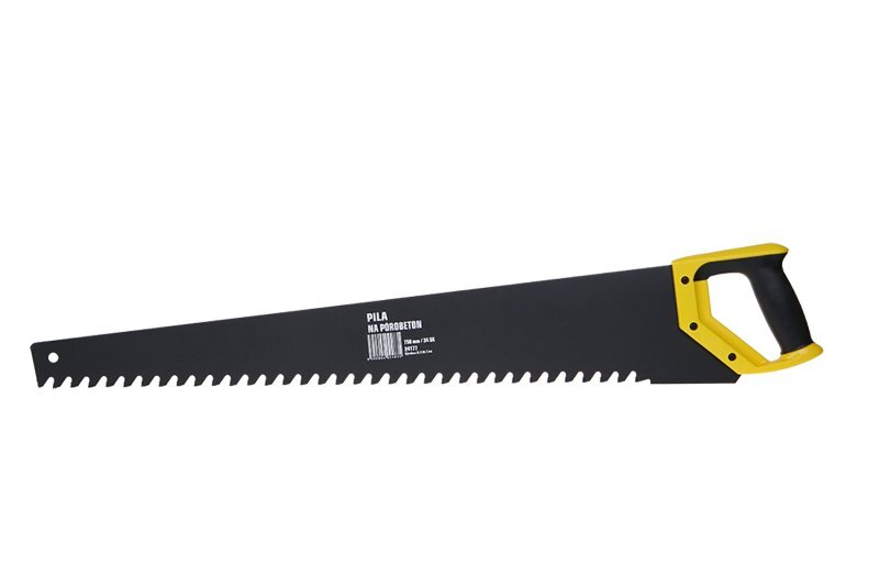 Ergonomická ABS rukojet s měkčenou TPR gumou. Tuhý ocelový list s břitovými destičky ze slinutých karbidů zaručující dlouhodobý řezný výkon. Počet osazených zubů: 34 Pracovní délka: 750mm Použití: profesionální pila pro řezání pórobetonových bloků.