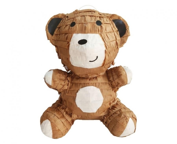 Přidejte na svou oslavu prvek radosti a napětí s touto půvabnou piňatou ve tvaru medvídka. Hnědý plyšový vzhled z papírových třásní, milý obličej a měkké tvary z ní dělají nejen krásnou dekoraci, ale i skvělou zábavní hru pro děti. Stačí ji naplnit sladkostmi, malými hračkami nebo jinými drobnostmi, zavěsit a nechat děti, aby ji postupně rozbily a odhalily překvapení uvnitř.