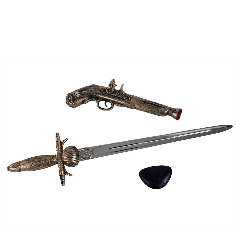 Pirátská sada, která umožní vašim dětem proměnit se v piráta, ať doma v pokojíčku nebo na karnevalové párty. Balení obsahuje pušku, meč a pirátskou klapku na oko. Vše je vyrobeno z PVC a baleno v krabici.