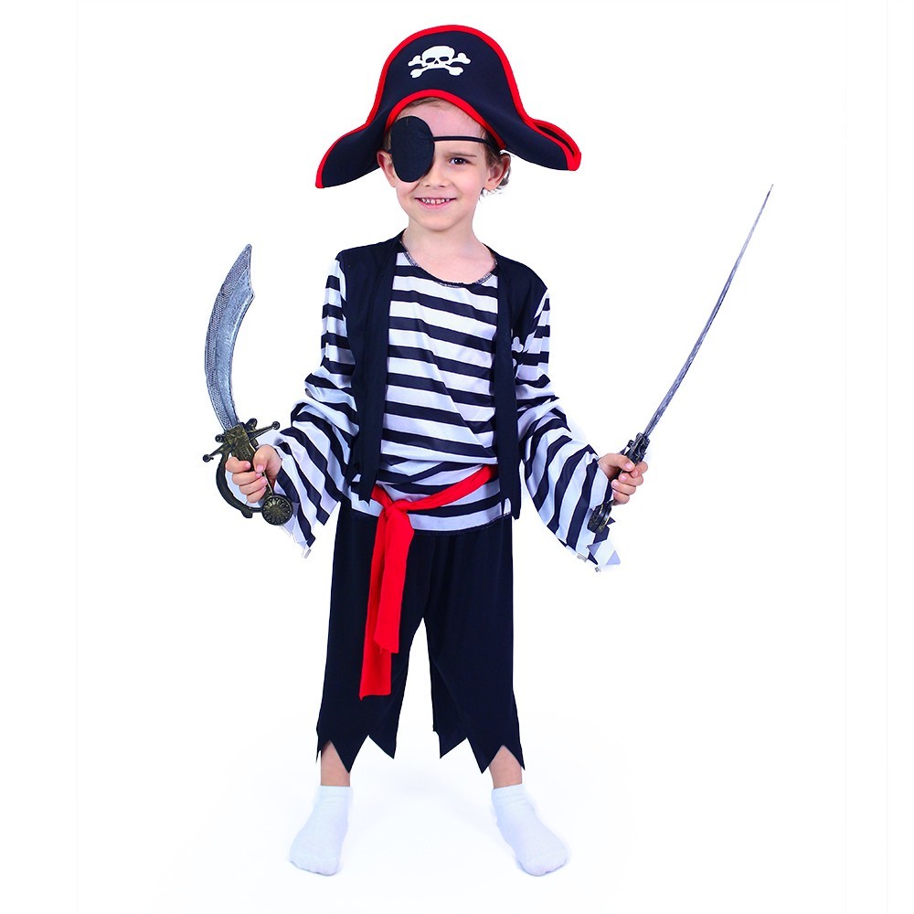 - Balení obsahuje horní díl, kalhoty, pásek, klapku na oko a pirátskou čepici