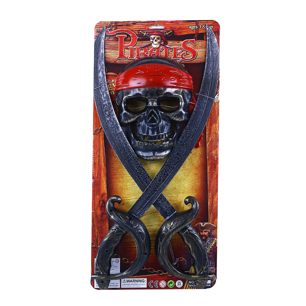 Exkluzivní sada pro všechny malé piráty! Tento parádní set obsahuje bronzovou masku na gumičku a meč s bronzovou rukojetí. Tyto super doplňky jsou ideální k pirátskému kostýmu! Vše je vyrobeno z PVC.