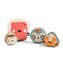 Opička má v sobě schovanou pískací hračku. Sova má výrazné kontrastní barvy a