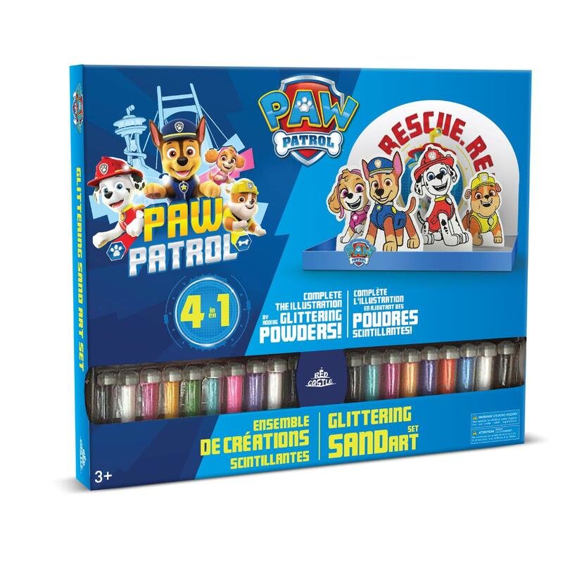 Pískování obrázků s motivy oblíbených postav z Tlapkové patroly.Sada obsahuje 4 speciálně vyřezané licencované kartičky podle konceptu včetně stojánků, pinzetu, 20 tub s barevným pískem, kartonové pozadí a stolek.Před použitím odstraňte obal a uchovejte pro další použití!Nevhodné pro děti do 3 let.Velikost balení: 32 x 34,5 x 4,5 cm.Návod k použití:1/ Sloupni jednotlivé části samolepícího papíru, nanes písek a přebytečný odstraň. Doporučujeme začít obrysy černým pískem. Barevný obrázek slouží jako předloha.