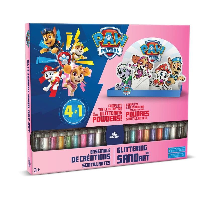 Pískování obrázků s motivy oblíbených postav z Tlapkové patroly.Sada obsahuje 4 speciálně vyřezané licencované kartičky podle konceptu včetně stojánků, pinzetu, 20 tub s barevným pískem, kartonové pozadí a stolek.Před použitím odstraňte obal a uchovejte pro další použití!Nevhodné pro děti do 3 let.Velikost balení: 32 x 34,5 x 4,5 cm.Návod k použití:1/ Sloupni jednotlivé části samolepícího papíru, nanes písek a přebytečný odstraň. Doporučujeme začít obrysy černým pískem. Barevný obrázek slouží jako předloha.