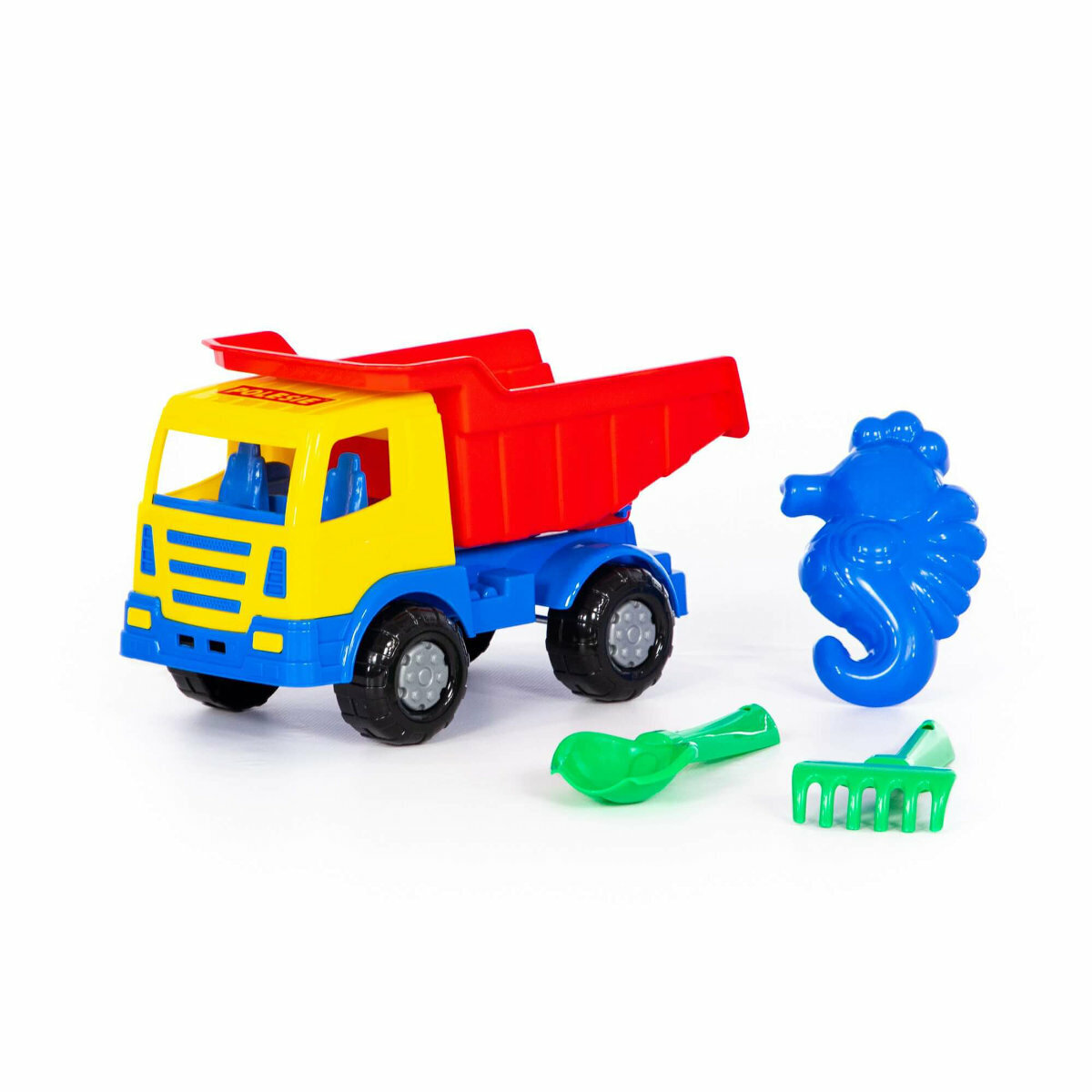 Polesie 93264 Zestaw Nr645: Miraż, samochód-wywrotka + szufelka Nr2, grabki Nr2, foremka (konik morski)