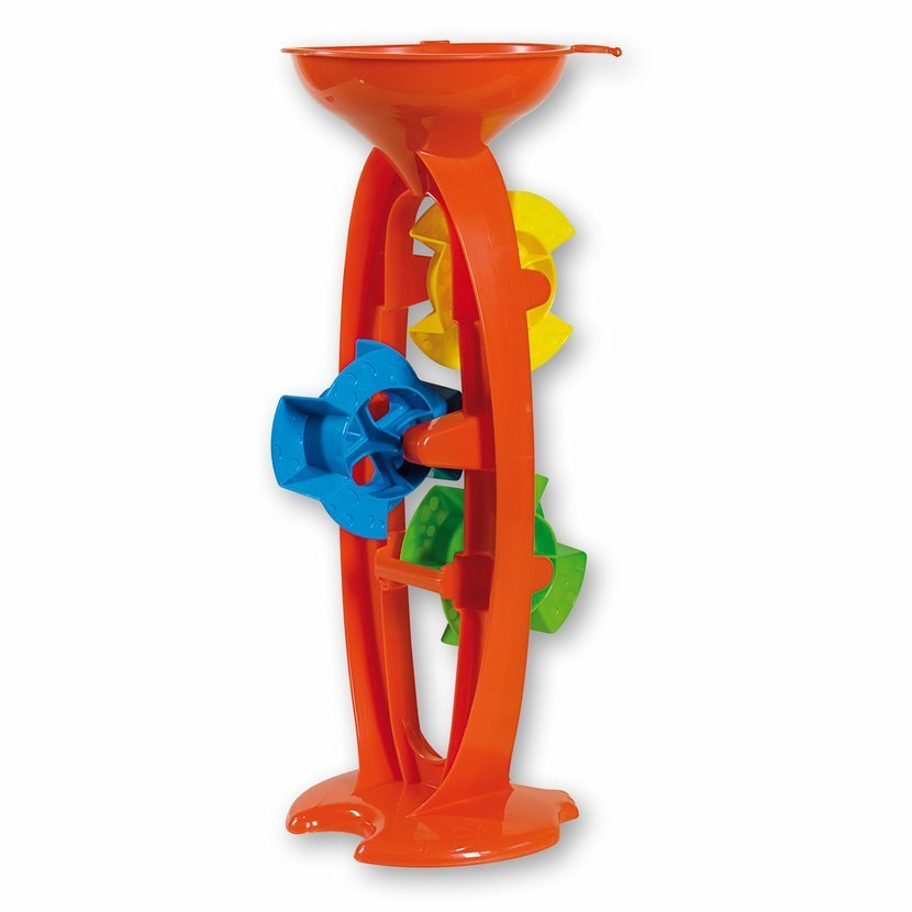 Mlýnek na písek a vodu se třemi lopatkovými koly vyrobený z kvalitních plastů v Itálii. Mlýnek: výška 40 cm, váha 0,43 kg.