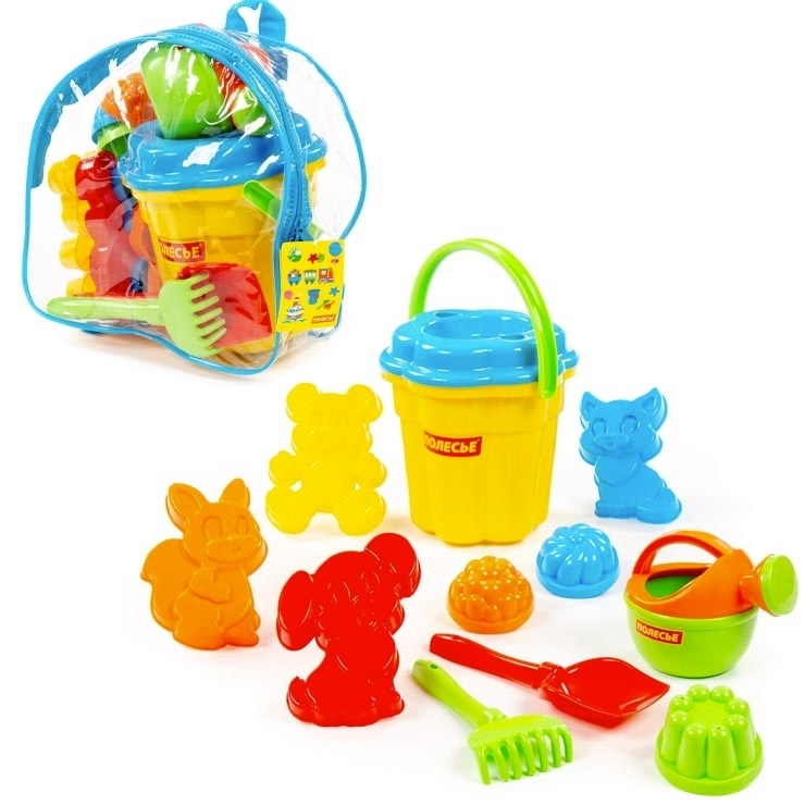 Souprava obsahuje vše, co mladý stavitel potřebuje pro nekonečnou zábavu: kbelík pro přenášení písku, 4 kusy formiček zvířátek i 3 kusy formiček na bábovky, které podnítí dětskou fantazii a rozvíjejí motoriku. K tomu je připojena praktická lopatka, hrabičky a krhlička pro zalévání a zvlhčování písku, což umožňuje vytvářet pevnější konstrukce a ještě více si hrát. Celý set je uložen v pohodlném a lehkém batohu, který usnadňuje přenos i uskladnění.