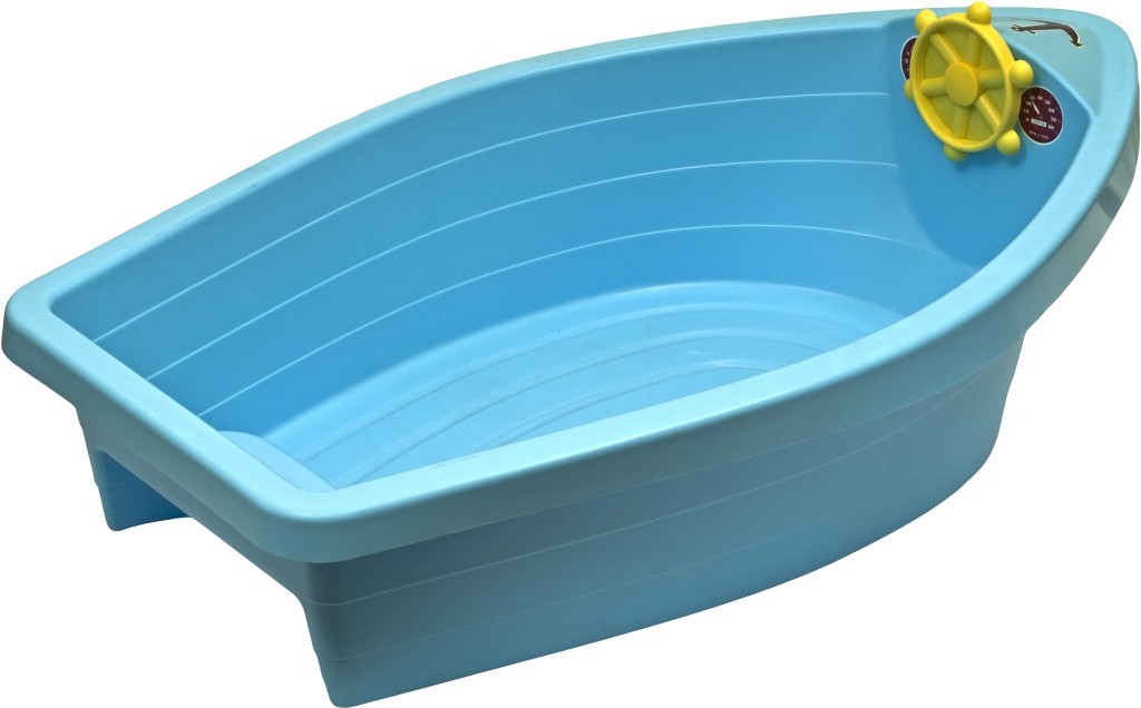 Pískoviště plastové ve tvaru LODIČKY, které lze využít jako bazének. Rozměr výrobku 130×74 cm a výška (hloubka) 42,5 cm.