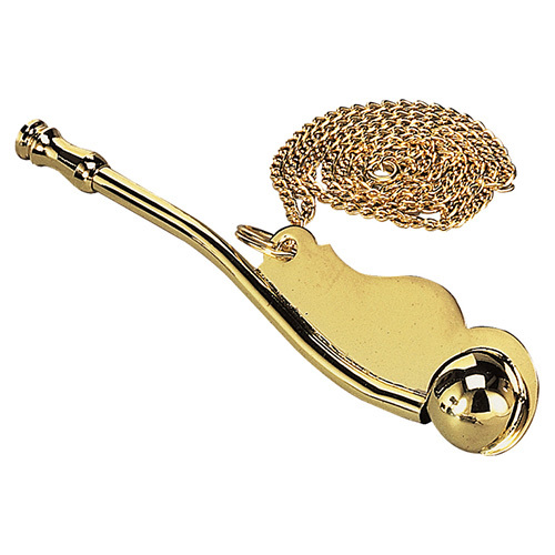 Tradiční námořnická píšťalka ve zlaté barvě, včetně řetízku. číst celé