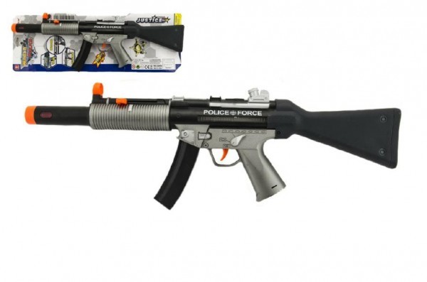Pistole samopal policie plast 59cm na baterie se zvukem se světlem na kartě