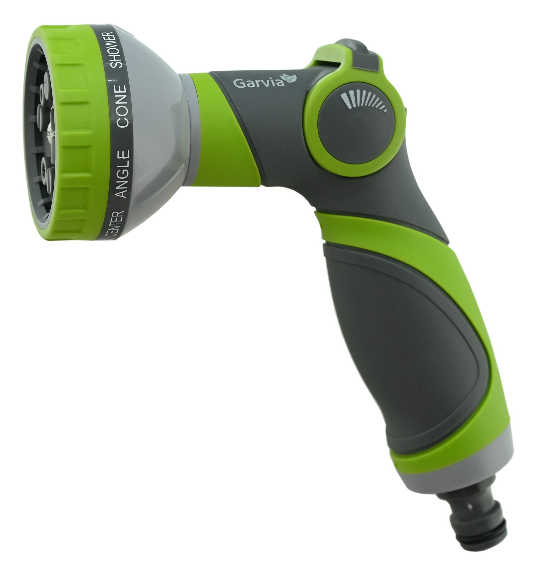 Pistole umožňuje výběr z 10 různých typů zavlažování otáčením čelní části (oplach, vertikální postřik, středový postřik, rozstřik pod úhlem, kuželový postřik, sprcha, vodní mlha, silný proud, plochý proud, smáčení). Vrchní část rukojeti je potom opatřena ovladačem průtoku vody a lze jej pohodlně ovládat palcem.