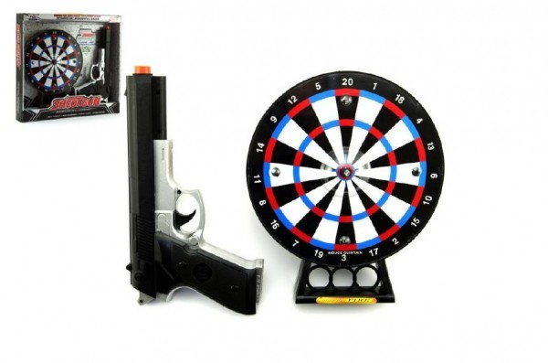 Pistole laserová 23cm + terč 19cm plast na baterie se světlem se zvukem v krabici 32x29x5cm
