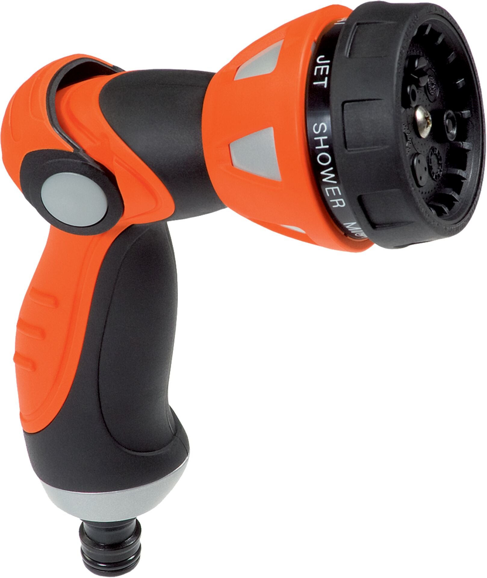 Popis: Víceúčelová postřikovací kovová pistole s ergonomickým držadlem, pryžovou hlavou, plynulou regulací rozstřiku, jednoduše ovladatelnou vpředu umístěnou aretací se sedmi druhy nastavení rozstřiku (sprcha, perlátor, mlžítko, proud atd.), se skvělým designem a funkční zdatností. Baleno v blistru.
