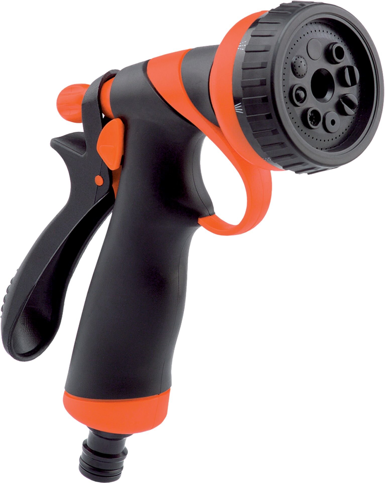 Popis: Víceúčelová postřikovací pistole s ergonomickým držadlem, se sedmi druhy nastavení rozstřiku (sprcha, perlátor, mlžítko, proud atd.). S regulací přítoku vody se skvělým designem a funkční zdatností. Baleno v blistru. číst celé