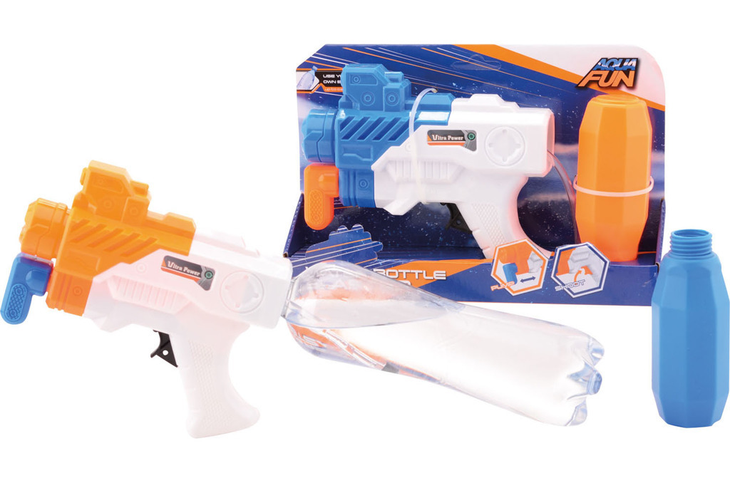 Vodní pistole plastová, lze našroubovat i plastovou láhev jako zásobník. číst celé