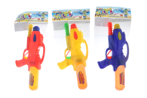 Plastová vodní pistole. Rozměry cca 30 x 14,5 cm. Baleno v sáčku 37,5 x 17,5 x 5 cm. Věk 3+ číst celé