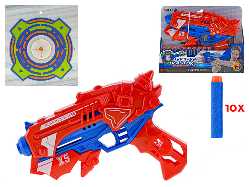 Pistole 23cm na natažení s pěnovými náboji 10ks a terčem v krabičce