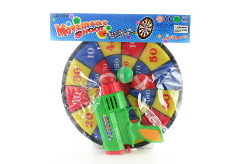 Balení obsahuje terč o velikosti cca 27 cm,3 míčky na sucý zip o velikosti cca 4 cm a plastovou pisktolku o velikosti cca 15 cm.Věk 3+ číst celé