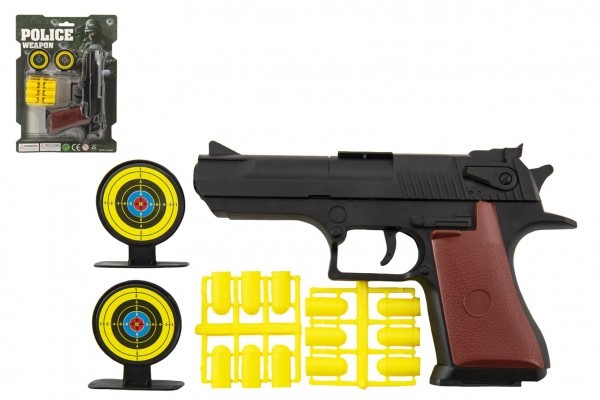 Pistole špuntovka 17cm plast + náboje 12ks + terč 2ks na kartě