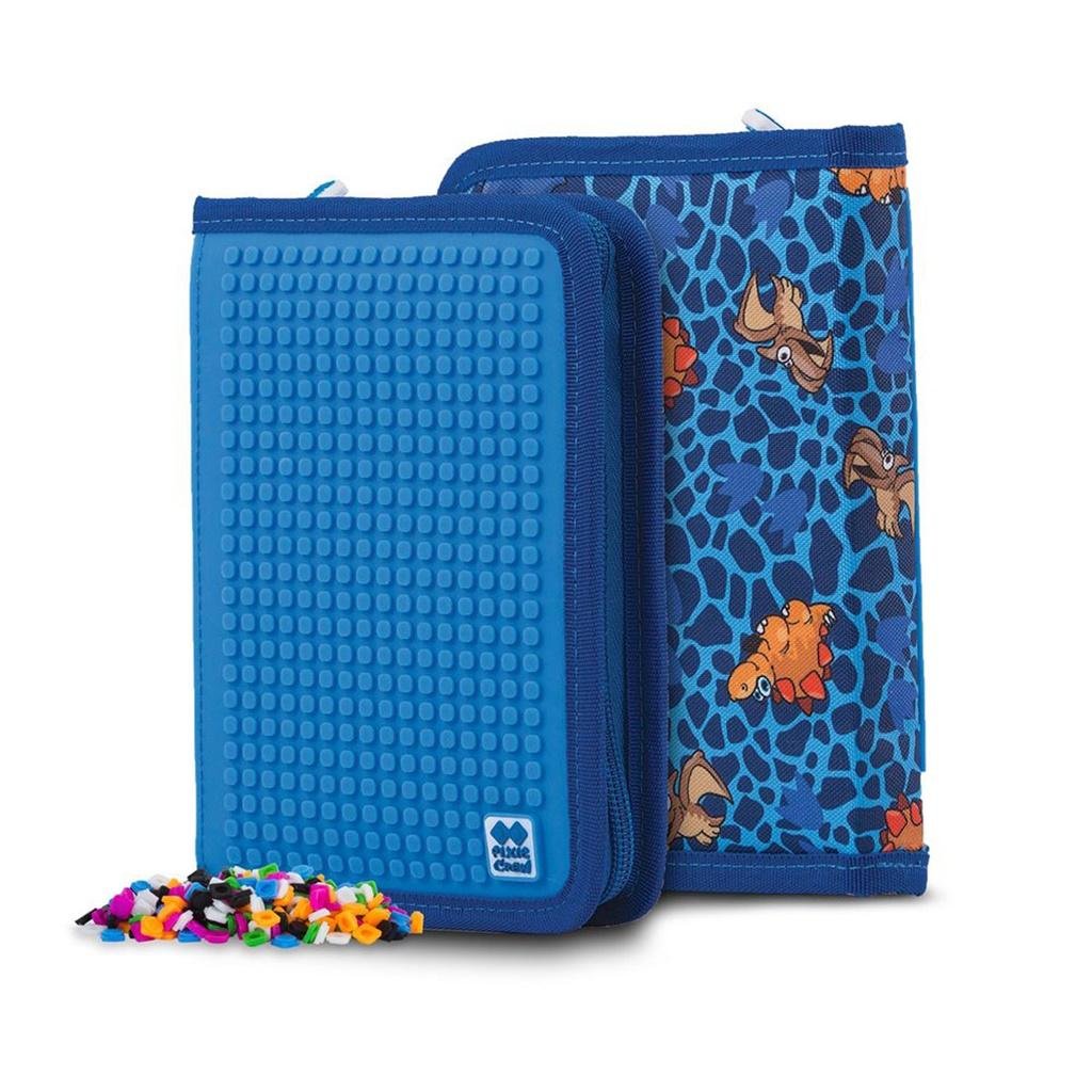 Szkolny piórnik na suwak PIXIE CREW z motywem radosnych Dinozaurów, posiada kreatywny niebieski panel, na którym można tworzyć oryginalne i spersonalizowane grafiki, za pomocą małych silikonowych pikseli. Piórnik wykonany został z poliestru. Wewnątrz znajduje się wystarczająco dużo miejsca na przybory szkolne. Jest 16 klasycznych gumek, do których można wsunąć ołówki, czy długopisy oraz 4 szersze na linijkę, gumkę, czy nożyczki. Wnętrze zawiera także transparentną kieszonkę. Piórnik jest sprzedawany z dodatkowym darmowym zestawem około 100 pikseli.