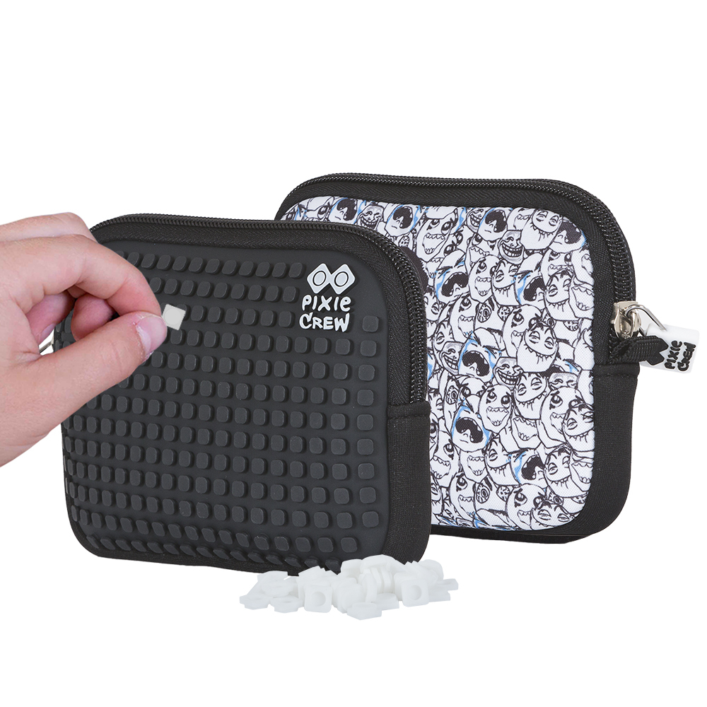 Přední stranu tvoří unikátní silikonový PIXIE CREW creative panel TM černé barvy o velikosti 19 x 13 bodů. Máte tedy k dispozici 227 pozic pro nekonečné množství motivů na každý den díky PIXIES (pixelům), které můžete kdykoli sundat a vyměnit za jiné. Ke každému pouzdru zdarma přikládáme balíček přibližně 100 ks malých PIXIES a mini galerii pro inspiraci. Pro neomezenou tvorbu obrázků doporučujeme k dokoupení malé PIXIES, které nabízíme ve 24 barvách nebo PIXIES s písmeny nebo multipixely (pixel o vel. 2x2 body) s obrázky. Vyzkoušejte si tvorbu obrázků nanečisto hned, na našem on-line PIXIE CREW editoru.