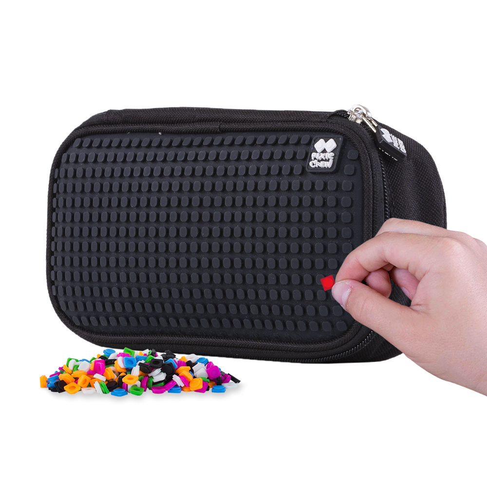 Na přední straně je umístěn unikátní silikonový PIXIE CREW creative panel TM černé barvy. K dispozici máte 448 bodů pro nekonečné množství motivů na každý den díky PIXIES (pixelům), které můžete kdykoli sundat a vyměnit za jiné. Ke každému penálu zdarma přikládáme balíček přibližně 100ks malých PIXIES (pixelů), inspiraci můžete také čerpat na stránkách pixiecrewgallery. Pro neomezenou tvorbu obrázků doporučujeme k dokoupení malé PIXIES, které nabízíme ve 24 barvách nebo PIXIES s písmeny nebo multipixely (pixel o vel. 2x2 body) s obrázky. Vyzkoušejte si tvorbu obrázků nanečisto hned, na našem on-line PIXIE CREW editoru.