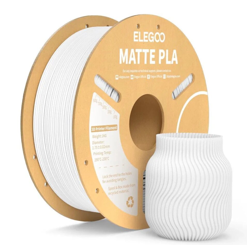 ELEGOO PLA MATTE Filament 1,75 mm, 1 kg, Bílá