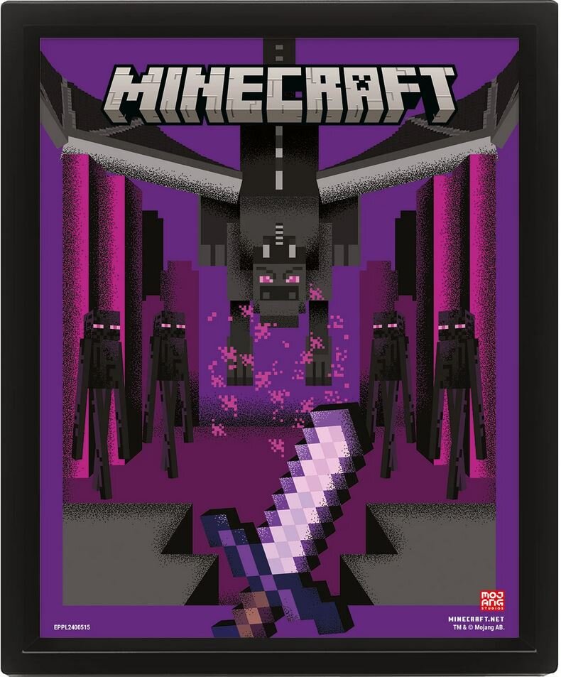 3D proměňovací obrázek v rámu s grafikou duelu s drakem. Obrázek je vhodným doplňkem pokoje každého menšího i většího fanouška hry Minecraft.