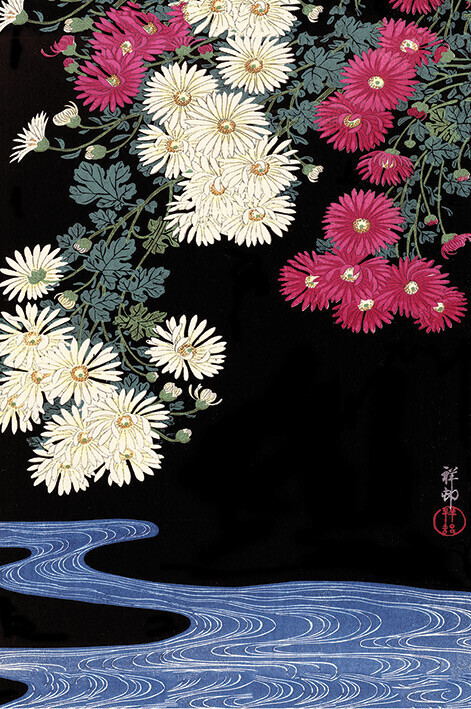 Plakát, Obraz - Ohara Koson - Chrysanthemum and Running Water, 61 × 91.5 cm