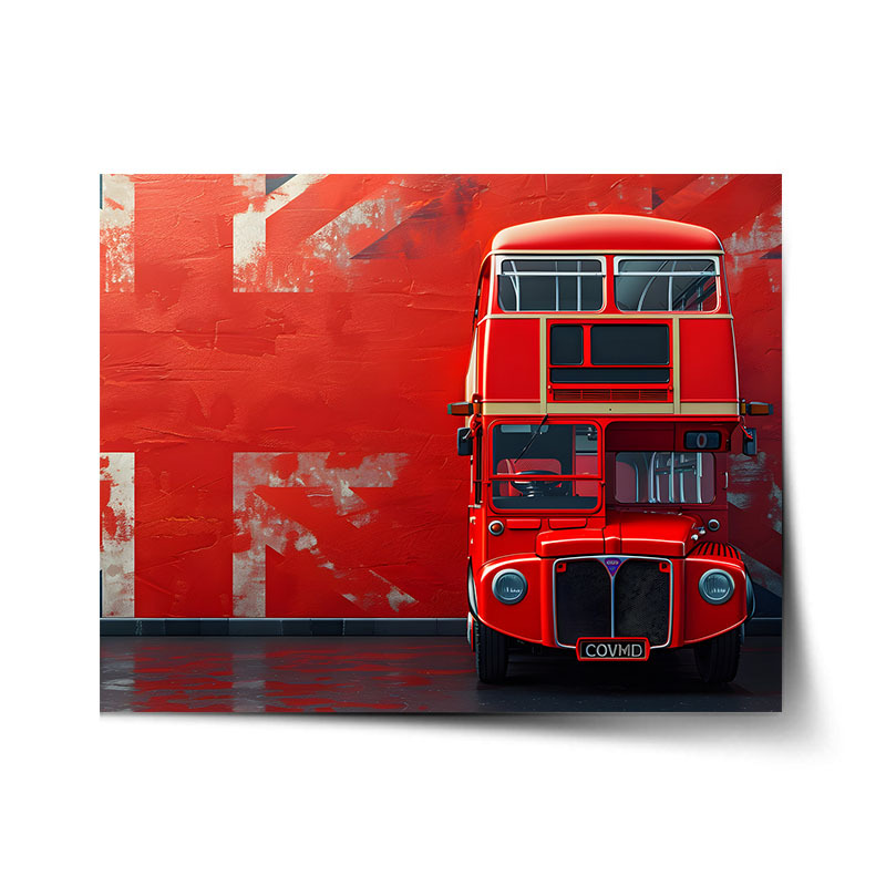Plakát Červený patrový autobus Vlajka: 60x40 cm
