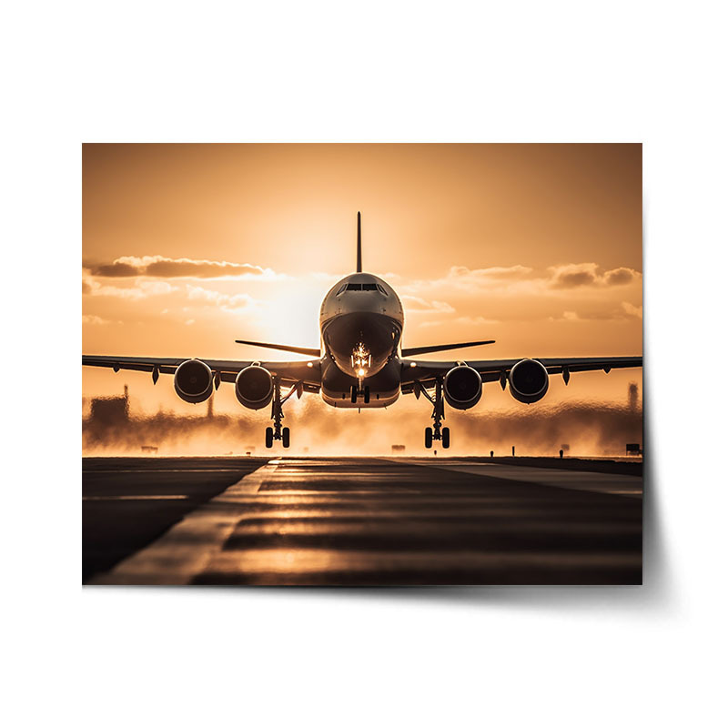 Plakát Letadlo přistávající při západu slunce: 60x40 cm