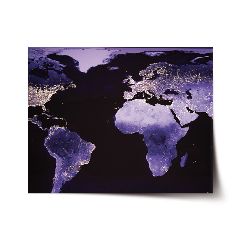 Plakát Světelná mapa světa: 60x40 cm