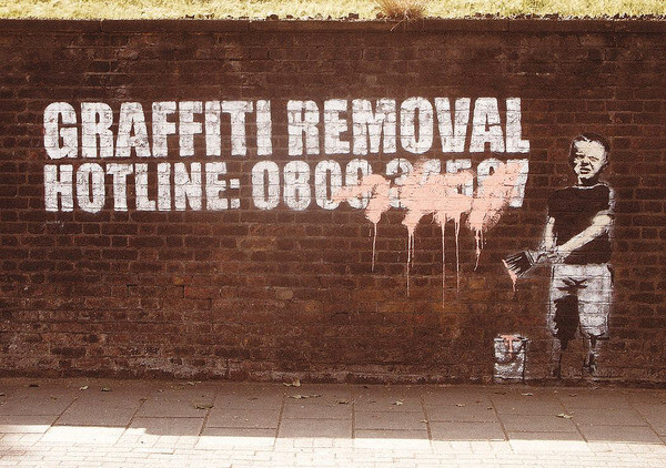 Plakát, Obraz - Banksy Street Art - Graffity Removal Hotline, 59 × 42 cm