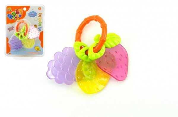 * chrastítko a kousátko ve výrazných barvách (žlutá, fialová, červená) s motivy ovoce (citronek, jahůdka, hrozny vína) podněcují rozvoj sluchu, zraku a hmatu dítěte.
