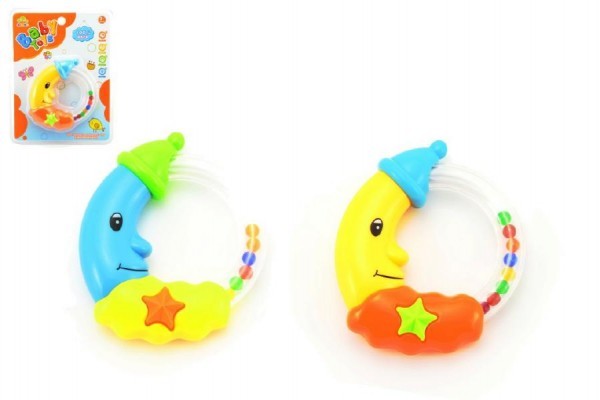 Chrastítko měsíc plast asst 2 barvy na kartě od 3 měsíců