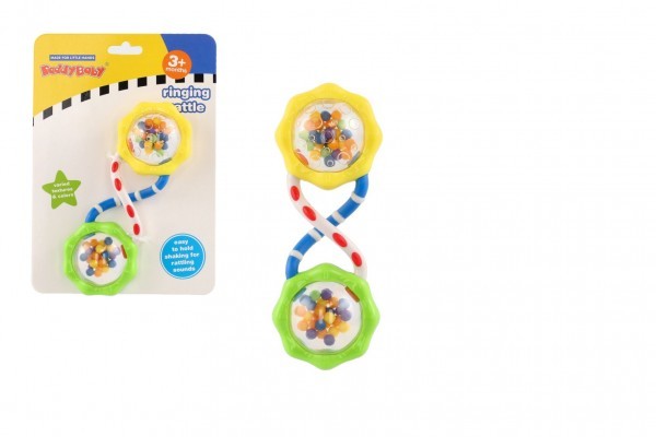 Barevné chrastítko má na koncích koule naplněné kuličkami, které při pohybu vydávají zvuk. Rozměr chrastítka: 14 cm Vhodné pro děti od 3 měsíců číst celé
