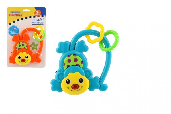 Chrastítko opice/opička plast 10x12cm na baterie 2 barvy se zvukem, světlem na kartě 3m+