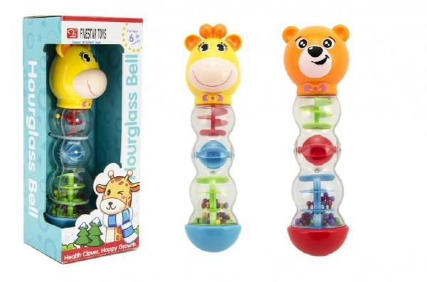 Chrastítko medvídek přesýpací plast 20cm v krabici 11x28x9cm 6m+