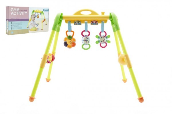 Barevná plastová hrazdička s pěti aktivními hračkami poskytne zábavu dětem od 0 měsíců. Hračky při pohybu vydávají různé zvuky, barevné závěsné hračky rozvíjejí dětský zrak a hmat. Hrazda je skvělá vývojová hračka pro děti. Vhodné od 3 let.