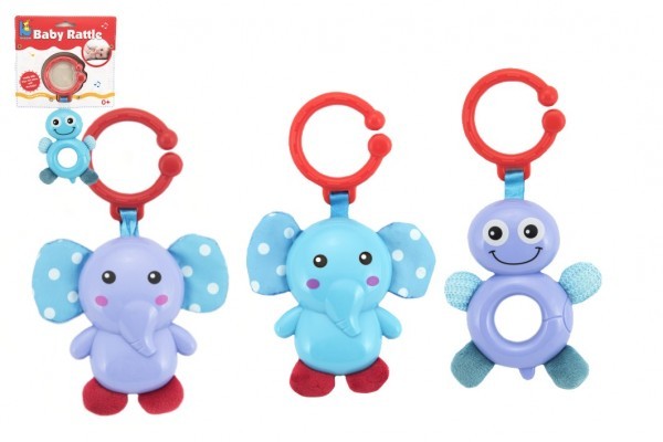 Chrastítko slon/želva plast 18cm 2 barvy na kartě v sáčku 0m+