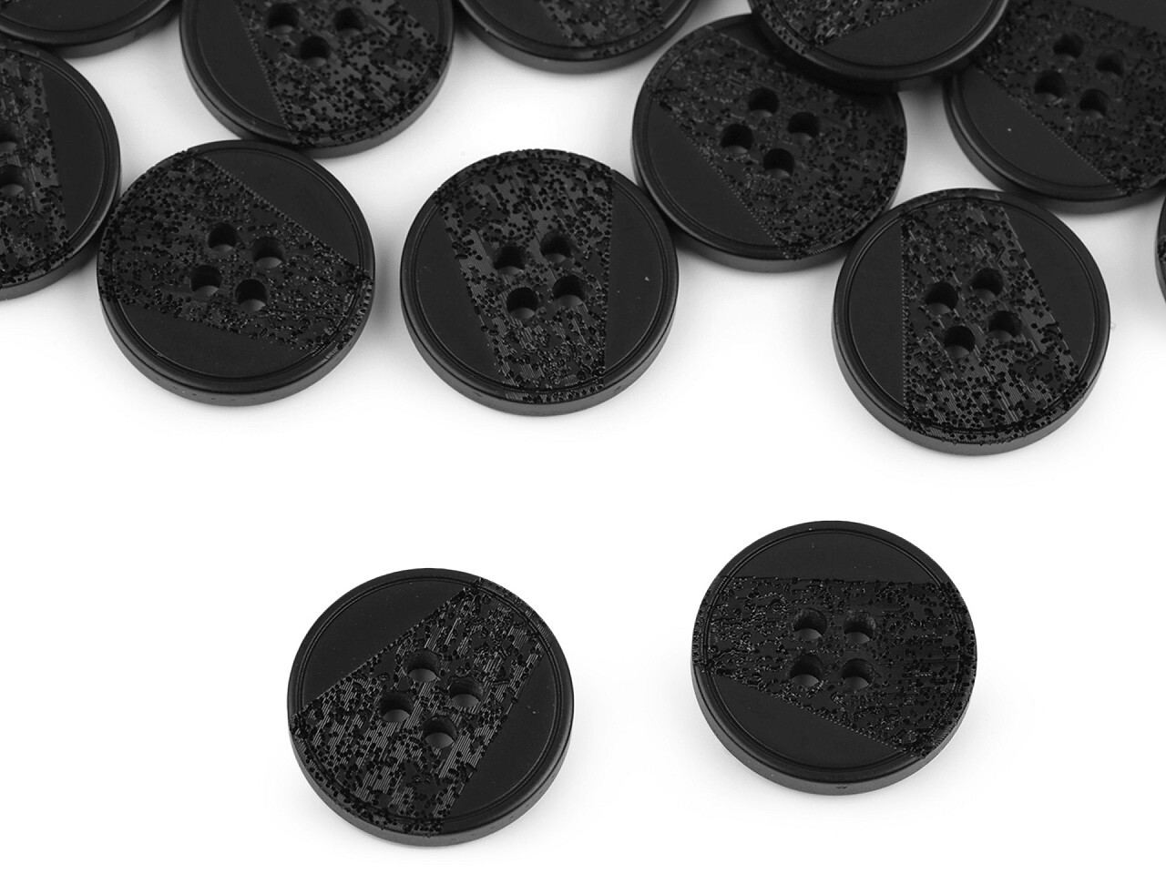 Čtyřdírkové knoflíky mají z části laserem vygravírovaný povrch. Vyniknou nejen na kabátech, ale i na svetrech, vestách apod. Velikost knoflíků naleznete v této tabulce.