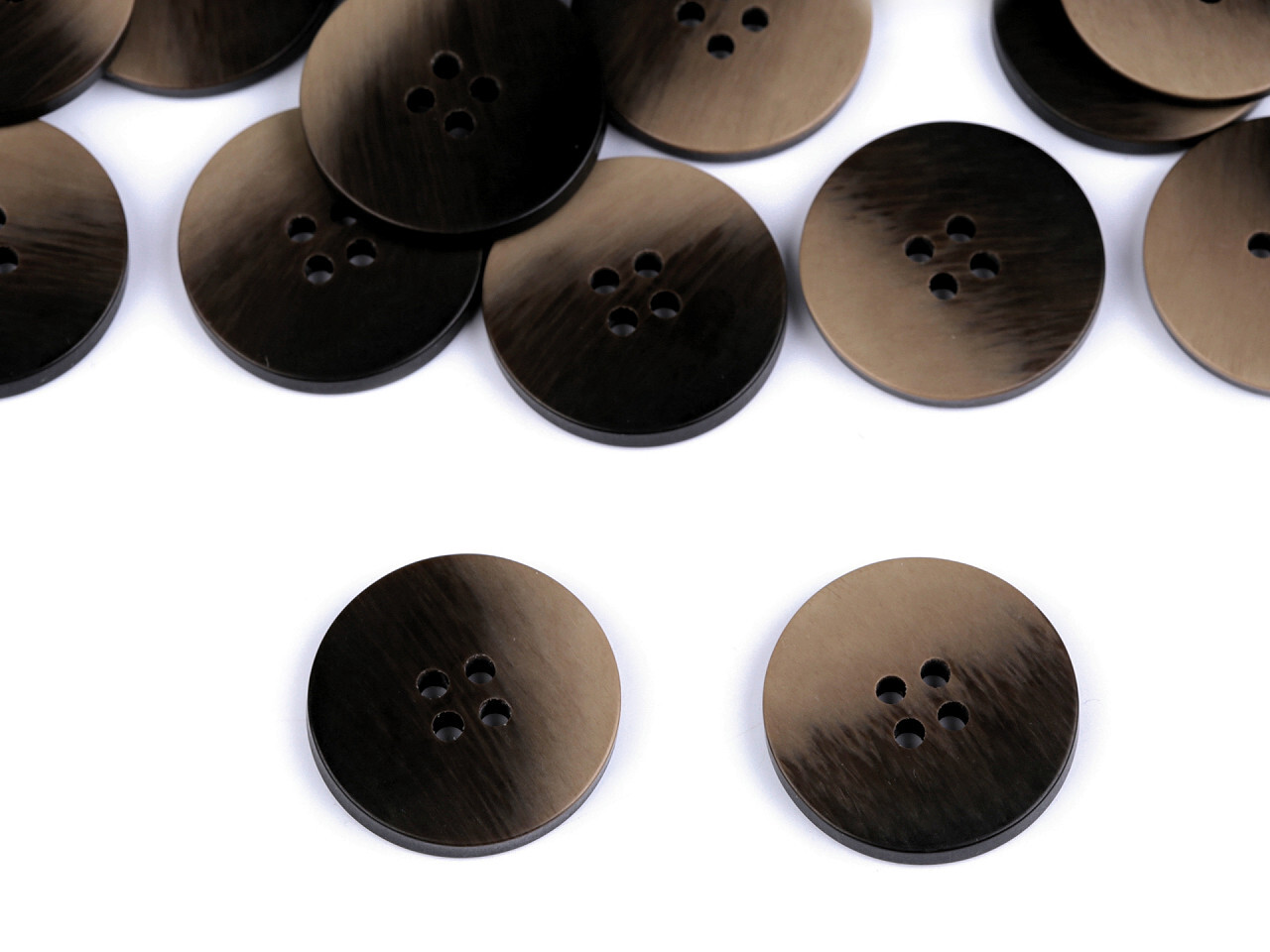 Čtyřdírkové knoflíky mají poutavý design díky jemnému barevnému ombré přechodu. Vyniknou nejen na kabátech, ale i na svetrech, vestách apod. Velikost knoflíků naleznete v této tabulce. číst celé