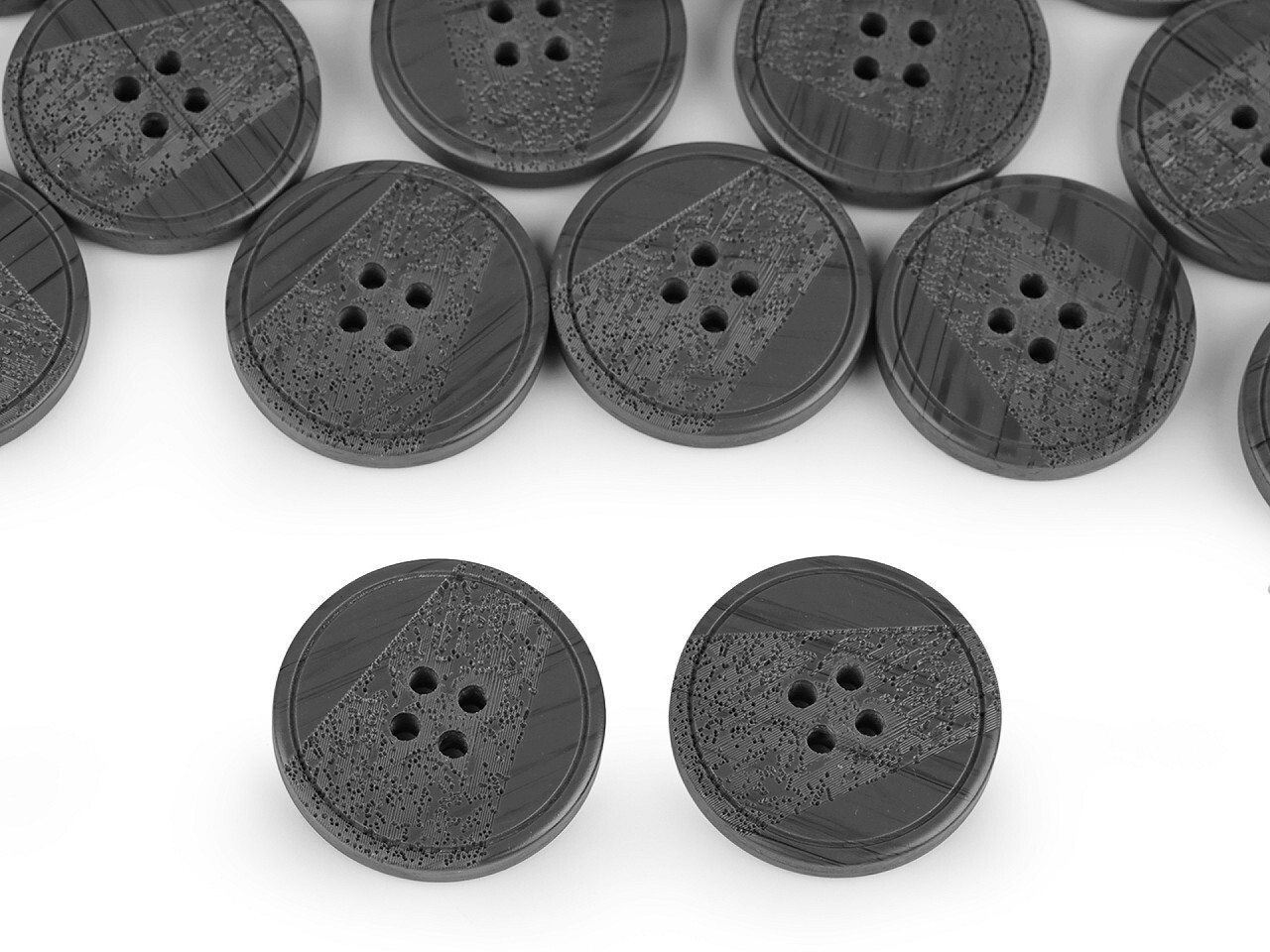 Čtyřdírkové knoflíky mají z části vygravírovaný povrch laserem. Vyniknou nejen na kabátech, ale i na svetrech, vestách apod. Velikost knoflíků naleznete v této tabulce. číst celé