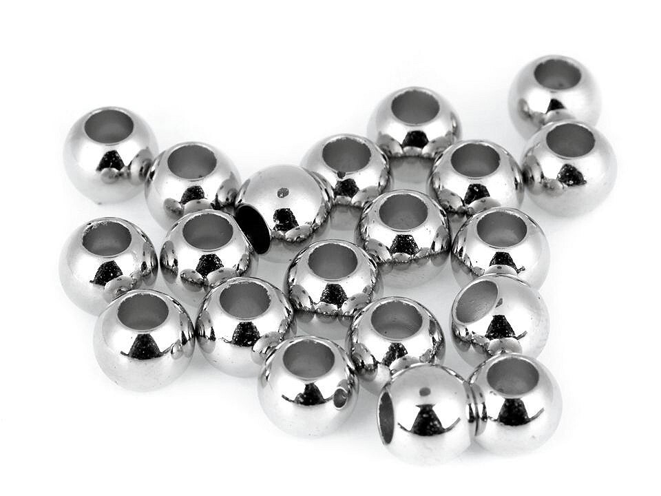 Plastové korálky s velkým průvlekem mají vysoký lesk, který věrně imituje opravdový kov.