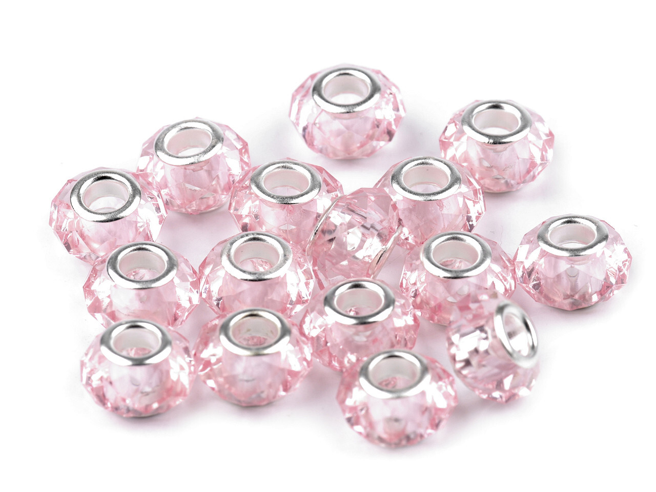 Plastové broušené korálky s velkým průvlekem 14,5x9 mm - 20 ks - 16 růžová nejsv.