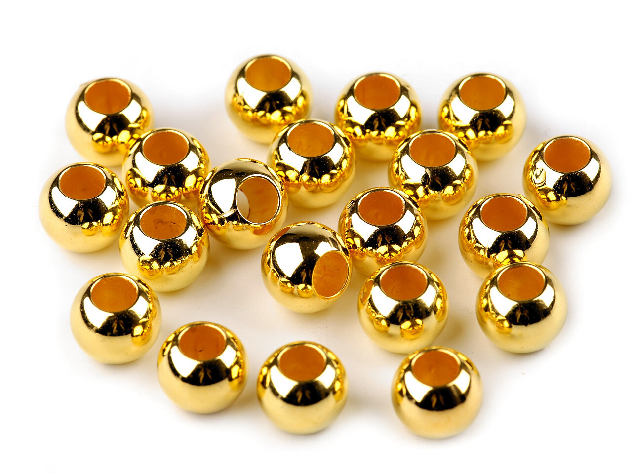 Plastové korálky s velkým průvlekem mají vysoký lesk, který věrně imituje opravdový kov.