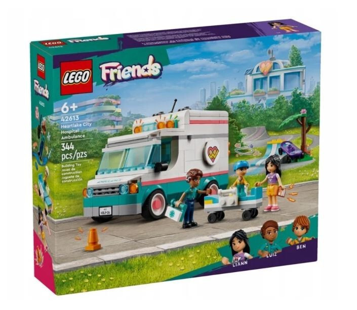 Dzięki zestawowi LEGO Friends Karetka szpitala w Heartlake (42613) dla chłopców i dziewczynek w wieku od sześciu lat, którzy uwielbiają zabawki o tematyce medycznej, dzieci mogą odgrywać ekscytujące historie o nagłych wypadkach. Zestaw wspierający rozwój społeczno-emocjonalny zawiera karetkę do zbudowania z rampą, scenkę ze skateparkiem, trzy postacie i akcesoria.